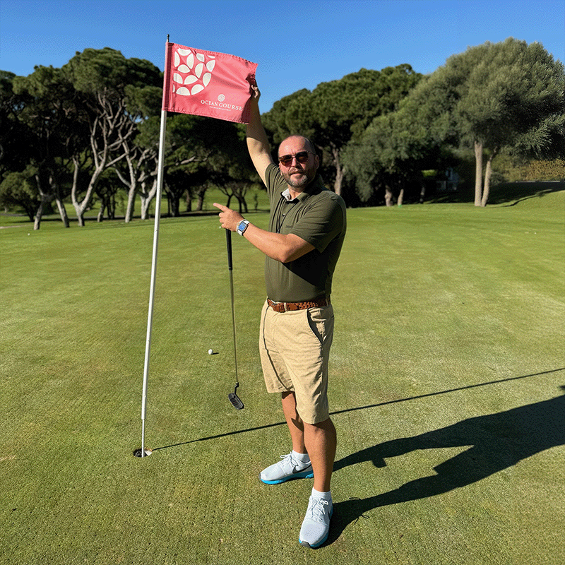 Quinta do Lago), he’s hooked. So hooked, in fact, that he "almost" hit his wife with a shanked shot on her birthday. She got a spa day. He got a new pre-shot routine.